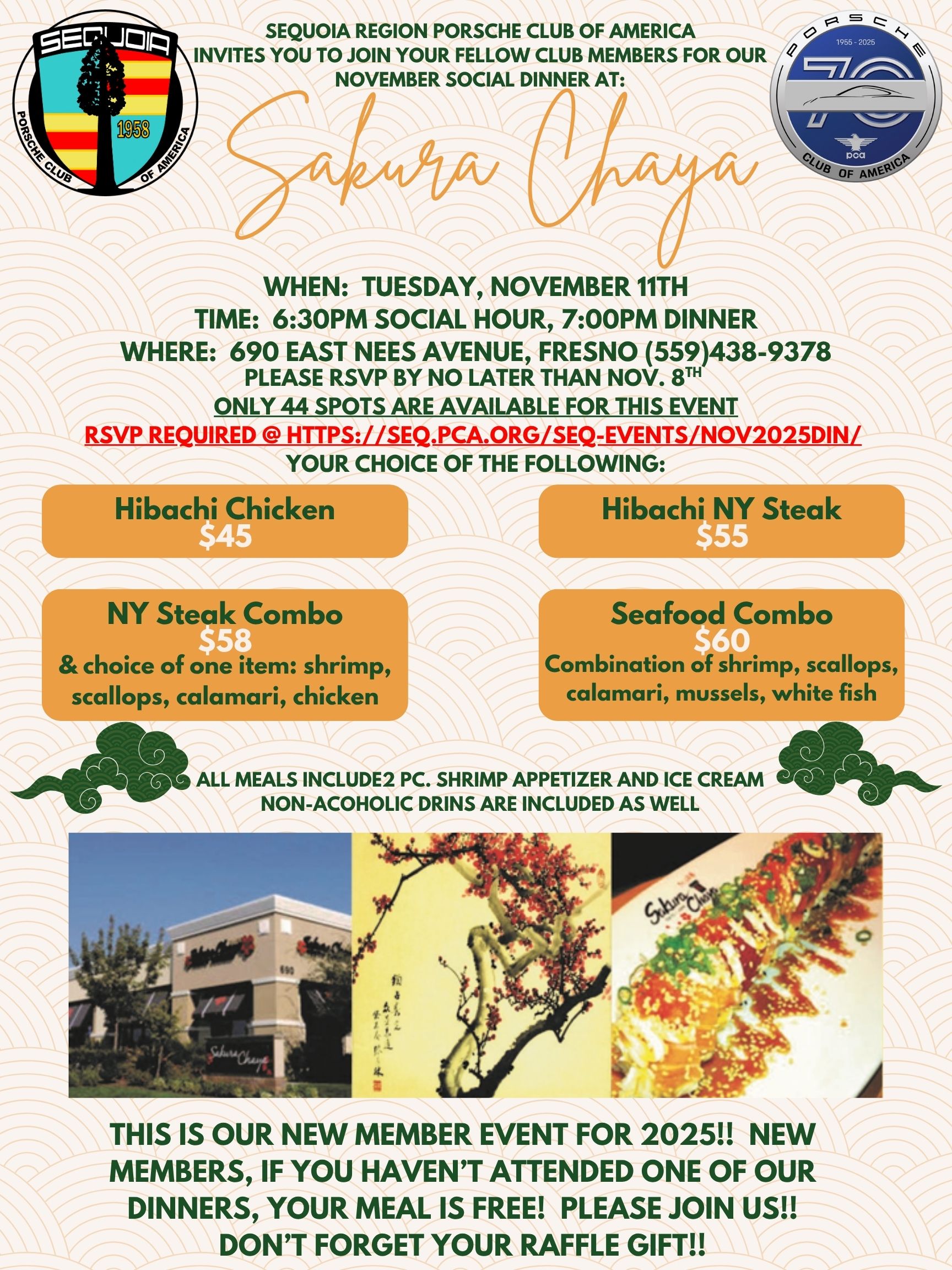 Come Join Us For Dinner At Sakura Chaya Seating Is Limited!