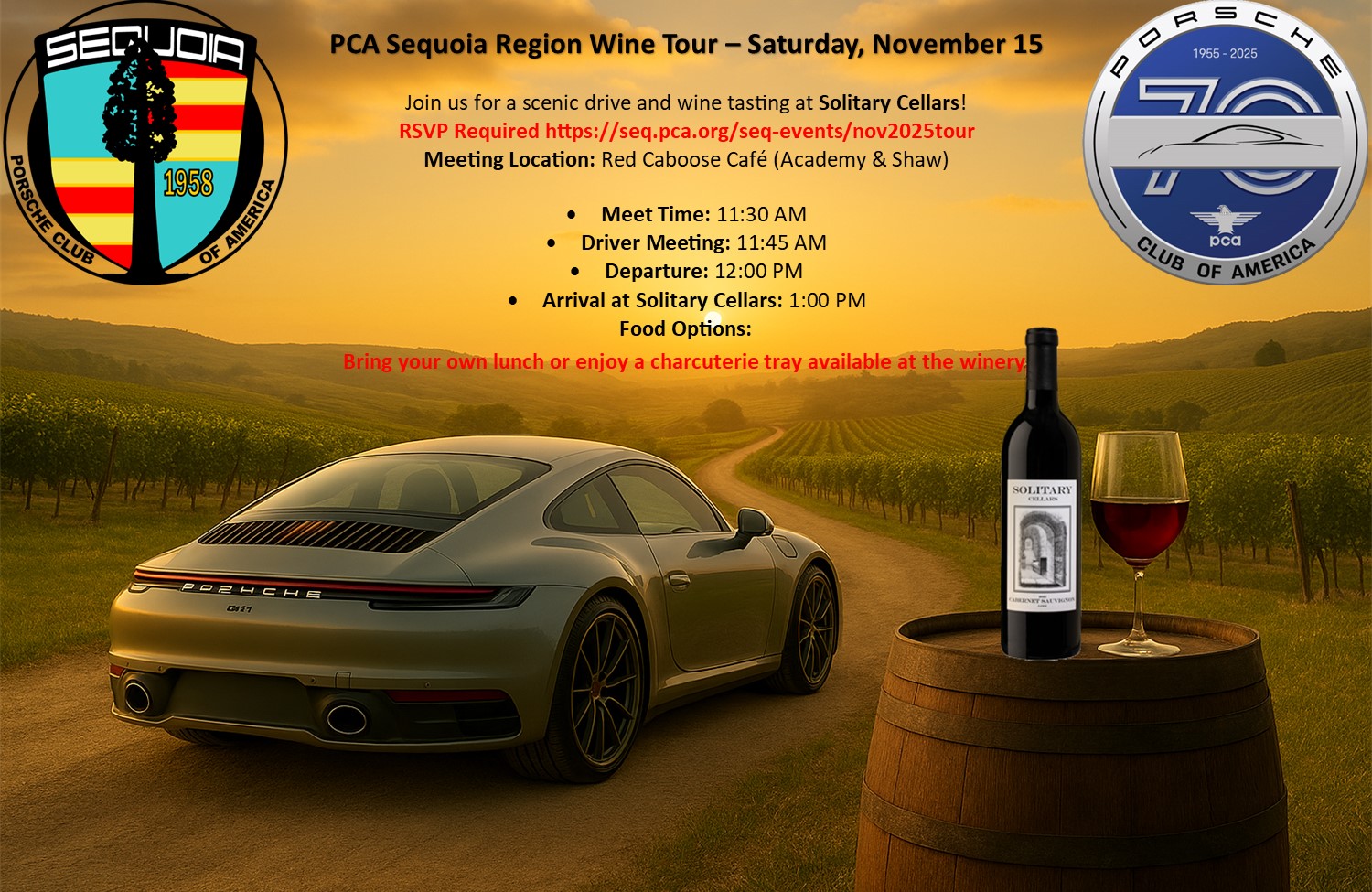 Wine Tour to Solitary Cellars 11:30 am November 15, 2025 Come Join Us For a Tour to and tasting of Solitary Cellars Winery! ONLY DRIVERS NEED TO RSVPName(Required) First Last Email(Required) Cell Phone(Required)Passengers(Required)Just Myself1234Any Minors as passengers? Yes Passenger names(Required) iCal Google Calendar View full calendar